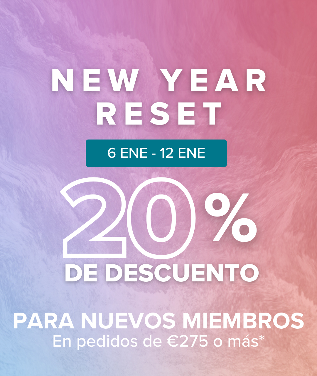 Del 6 al 12 de enero, los nuevos Clientes pueden disfrutar del 20% de descuento en su primer pedido de €275+.