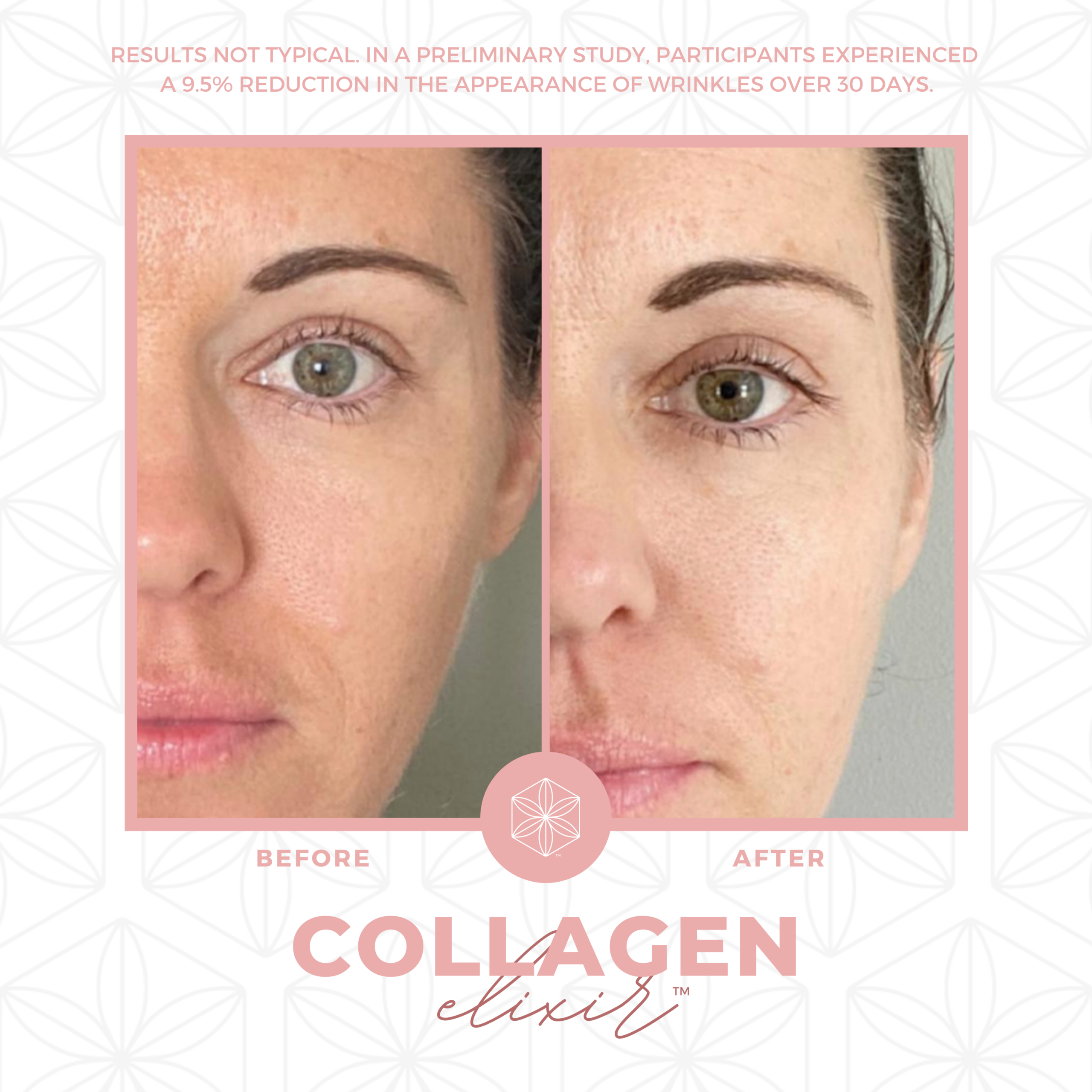 *I risultati illustrati sono quelli dei Clienti Isagenix che hanno utilizzato Collagen Elixir insieme a una routine di cura della pelle e integratori per 30 giorni con uso quotidiano. In uno studio preliminare, i/le partecipanti hanno manifestato una riduzione del 9,5% nell’aspetto delle rughe nell’arco di 30 giorni.